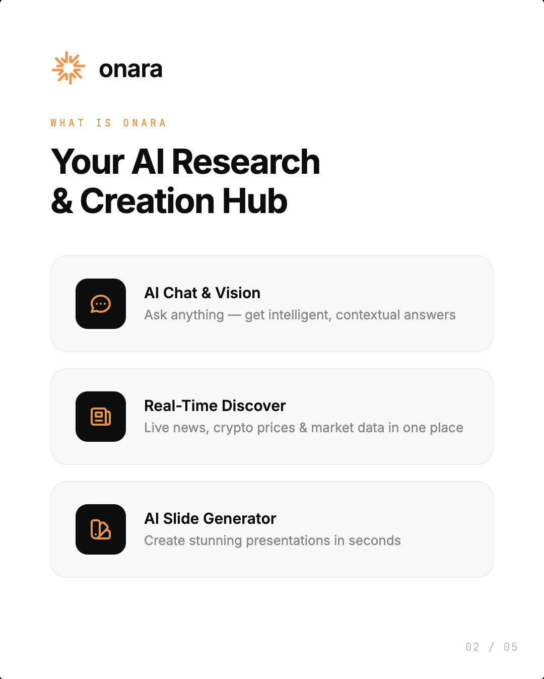 We partnered with Onara as their full creative and marketing team, from pre-launch to ongoing growth. Onara is building the first predictive decentralized AI, targeting $50M in funding. We built the entire marketing presence to reach both users and investors. From the explainer video breaking down the technology, to investor-facing content and pitch-ready visuals, to managing their complete social media from day one. Content strategy, scripted videos, feature announcements, product updates. Everything their audience and investors see - created by Hano Animations.